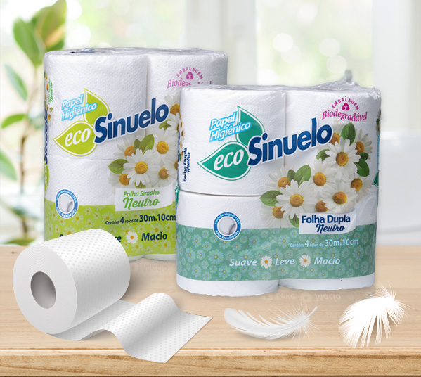 O papel higiênico Eco Sinuelo foi desenvolvido para proporcionar suavidade, leveza e conforto em cada uso. Disponível nas versões folha simples e dupla, é produzido com material de alta qualidade e embalagem biodegradável, garantindo cuidado pessoal com responsabilidade ambiental.